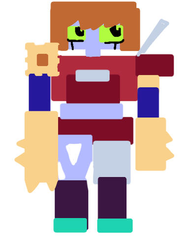 She also owns a weapon, a large hammer like object with a scythe like blade on one of the ends.
