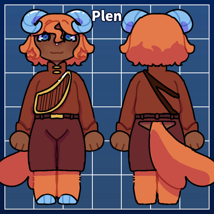 Plen wears a harp with strings made of thin metals, his clawed fingertips being able to play the harsh material. He can also take out the strings, revealing them as thin sharp needles. He uses them both as weapons as well as acupuncture, but he prefers using a smaller and cleaner set that he owns.